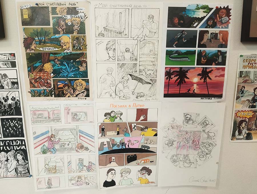 На ул. Радио в эти дни прошли творческие конкурсы студентов первого и второго курсов «Союзмультфильм в гостях у художников», и «Комиксы. «История одного дня». Студенты выполнили шуточные композиции с известными мультипликационными персонажами в сюжетах картин известных художников и комиксы с различными историями :грустными, весёлыми, романтическими, страшными и т.д.