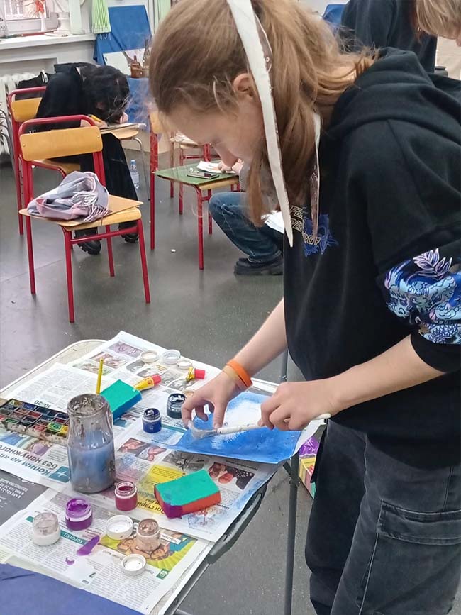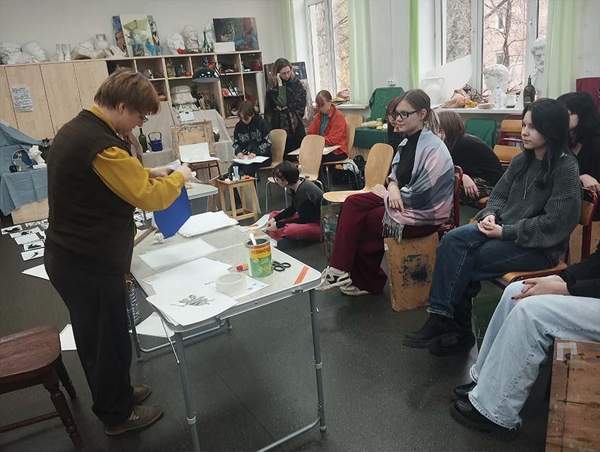 16 октября 2025 года Аксютина Наталья Сергеевна провела со студентами второго и третьего курса отделения анимации мастер-класс «Трафареты на кальке», где изображали сказочных героев, используя приём калечного трафарета, после чего работы были выставлены на показ для оценки голосованием.