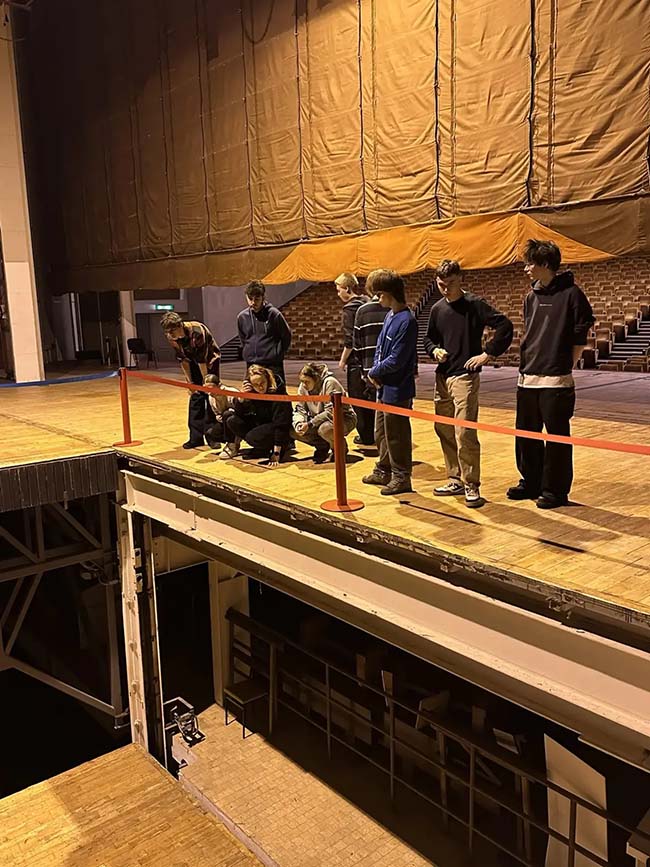 24 марта 2025 года под руководством преподавателя отделения Кореняко Ю.В. было организовано выездное, ознакомительное занятие с группой 2ОС на площадке Государственного академического Малого театра России. Студенты познакомились с театральным оборудованием верхней и нижней механизации, познакомились с репертуаром, условиями работы сотрудников художественно-постановочной части.