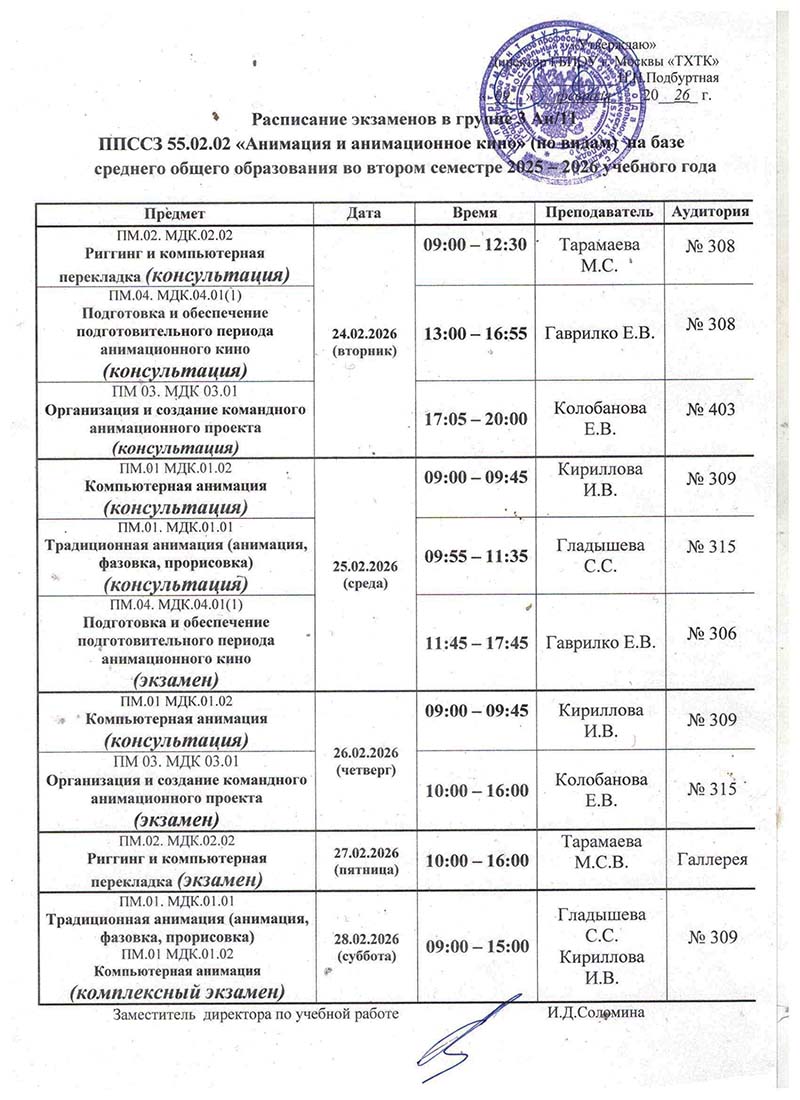 по специальности 55.02.02 "Анимация" (по виду: художник-мультипликатор)