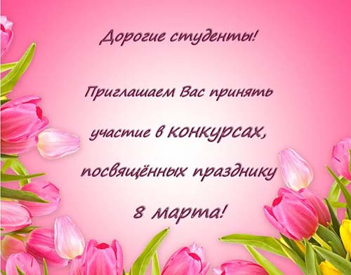 Предлагаем Вам принять участие в творческих конкурсах, приуроченных к Международному Женскому Дню 8 Марта, в следующих номинациях: