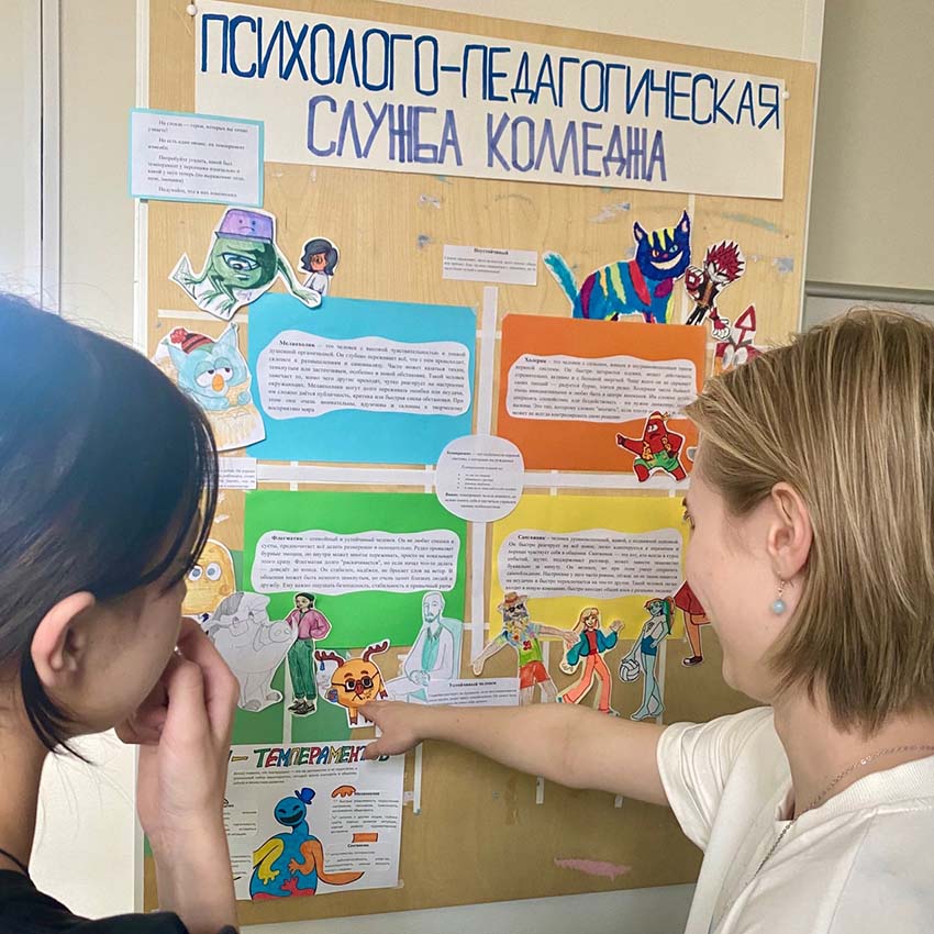 В апреле 2025 года под руководством педагога-психолога Лапиной Е.А. в колледже обновлён информационный стенд психолого-педагогической службы. Темой нового оформления стал темперамент как основа индивидуально-психологических особенностей личности. Стенд дополнен интерактивными элементами, позволяющими студентам самостоятельно ознакомиться с типами темперамента, пройти краткие диагностические задания, получить информацию о характерных проявлениях каждого типа в учебной и социальной деятельности, а также ознакомиться с рекомендациями по эффективному взаимодействию с представителями разных типов темперамента. Обновлённый стенд направлен на развитие психологической грамотности обучающихся и формирование навыков самопознания.