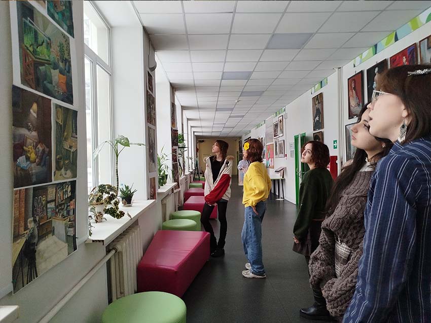 15 апреля 2025 года в преддверии 80-летия Великой Победы, в колледже, на ул. Радио, открылась выставка творческих работ, посвящённая великой дате. В экспозицию выставки вошли сюжеты, отражающие события тяжёлого времени нашей страны и великий подвиг советского народа в годы Великой Отечественной войны на фронте и в тылу. Студенты младших и старших курсов выполнили достойные работы, посвящённые юбилейной дате. В экспозицию выставки вошли работы разного жанра: батальный жанр, портрет, натюрморт, плакат; техника исполнения очень разнообразная (темпера, гуашь, акварель, пастель, мягкие материалы). Выставка трогательная и одновременно праздничная. В творческих работах студентов заметно трепетное отношение к юбилейной дате, к людям, принявшим на себя тяготы военного времени и вставших на защиту Родины.