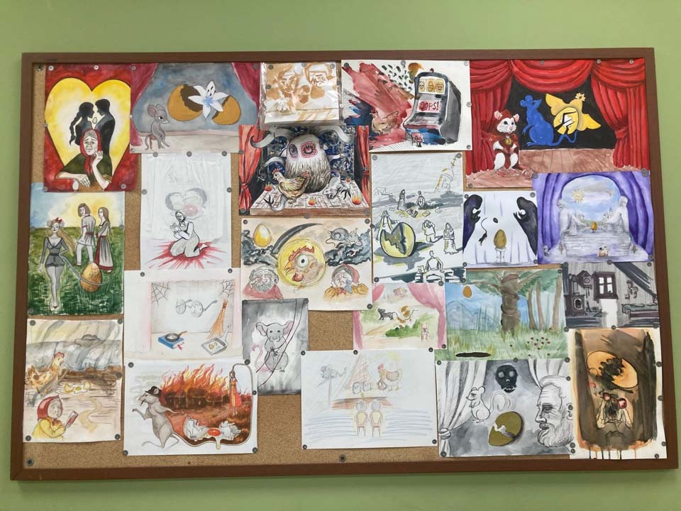 В апреле 2025 года студенты 2 курса художественных отделений с преподавателем Барыниной А.В. на занятии по Истории театра приняли участие в создании коллажа: «Авторские интерпретации народных сказок в эстетике символизма».