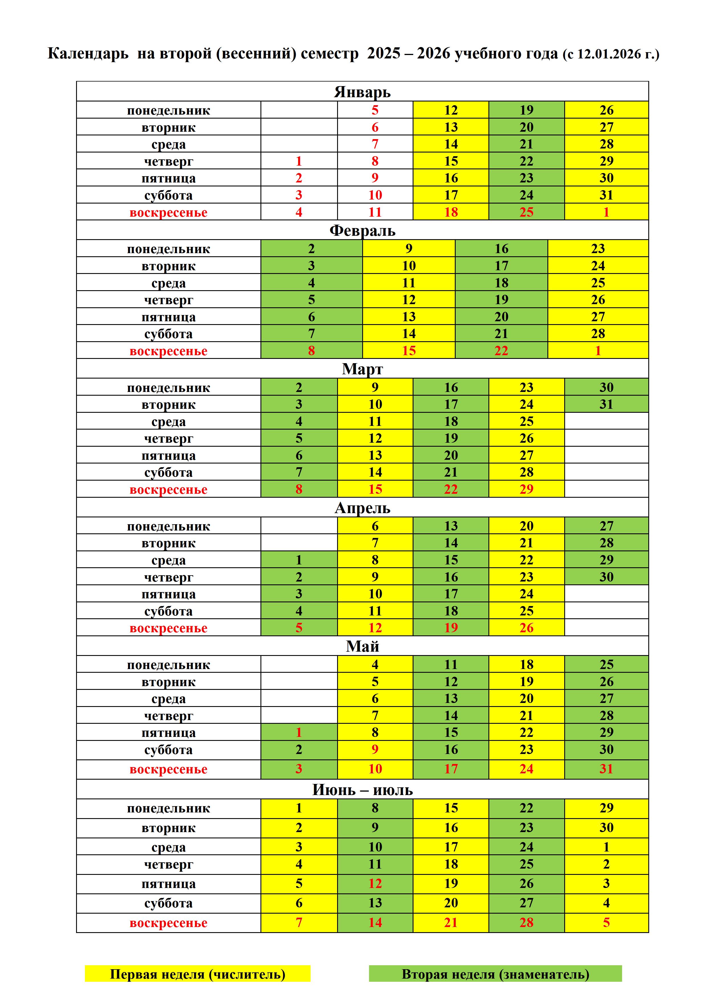Расписание занятий во II полугодии 2025-2026 учебного года