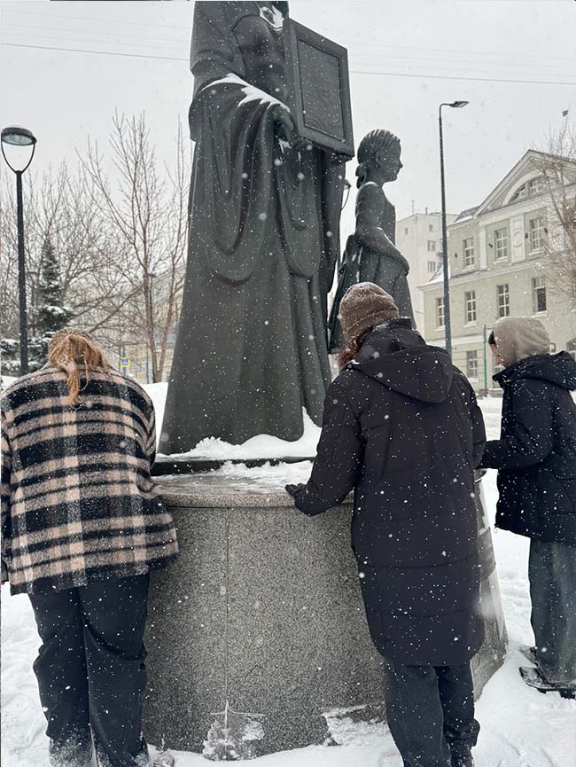 13 октября 2023 года заместитель директора по УВР Речкина Л.Я. и студенты группы 2Ан/9 в рамках социального проекта «Перекличка поколений: улицы моего города» провели экскурсию по местам, связанным с именем известного поэта М.Ю. Лермонтова. Речкина Л.Я. рассказала о культурном историческом объекте «Церковь Вознесения Господня на Гороховом поле», о родном дяде А.С. Пушкина – В. Л. Пушкине, известном стихотворце начала XIX века. Ранее обучающиеся посетили Богоявленский кафедральный собор в Елохове, один из наиболее известных храмов Москвы, где в 1799 г. был крещен Александр Пушкин. Студенты возложили цветы к памятнику, посвященному 7-й Бауманской дивизии народного ополчения, почтив память погибших воинов. Экскурсия очень понравилась обучающимся.