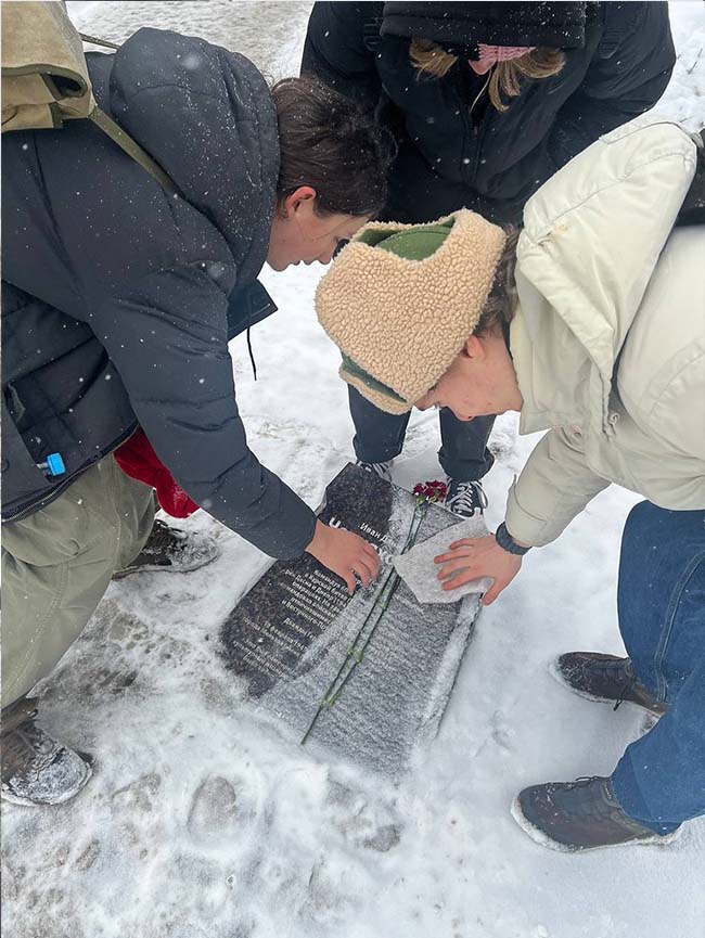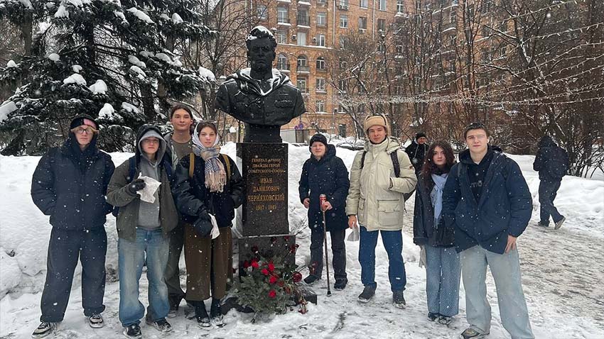 22 февраля 2023 года обучающиеся нашего колледжа под руководством заместителя директора по УВР Речкиной Л.Я., педагога-психолога Алтуниной Ю.П., библиотекаря Зинковской Е.В. приняли участие в мемориальной акции, которая проходила у памятника советскому военачальнику, генералу армии, дважды Герою Советского Союза Ивану Черняховскому, который находится в сквере на одноименной улице. Лидеры Студенческого совета ГБПОУ г. Москвы «ТХТК» прочитали стихотворения известных авторов о Великой Отечественной войне. Собравшиеся почтили минутой молчания память бойцов, павших в годы Великой Отечественной войны, и возложили цветы к подножию монумента.