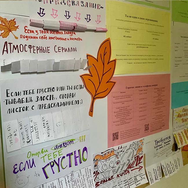 3 февраля 2025 года под руководством педагога-психолога Лапиной Е.А. в колледже был обновлен стенд психолого-педагогической службы, разработанный совместно со студентами художественных специальностей. На нем представлена подробная информация о деятельности службы, доступных ресурсах и порядке обращения за помощью. Стенд разработан в интерактивном формате: студенты могут самостоятельно определять с какими запросами работает конкретный специалист помогающей профессии (психолог, психотерапевт, психиатр). Данная инициатива направлена на повышение уровня психологической грамотности студентов, создание комфортной среды в колледже и расположению к открытому диалогу со специалистами службы психолого-педагогической службы об интересующих студентов вопросах.