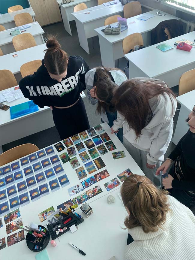 27 ноября 2025 года педагог-психолог Лапина Е.А. провела в группе 3Реклама(к) занятие с использование метафорических ассоциативных карт. Во время занятия студентам была предоставлена возможность стать участниками необычного творческого процесса - создания сказки. Через эту работу студенты исследовали: свои актуальные переживания; внутреннее состояние «здесь и сейчас»; потребности. После творческой части участники размышляли о том, как можно помочь себе в преддверии зимы, нового года и сессии, какие внутренние ресурсы могут поддержать и что можно сделать, чтобы снизить нагрузку и улучшить эмоциональное состояние. Занятие стало мягким, безопасным и вдохновляющим способом соприкоснуться с собой и своими переживаниями, а также найти новые пути заботы о себе.