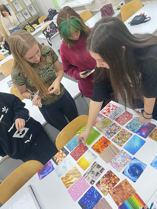 В октябре 2025 года педагог-психолог Лапина Е.А. проводит ресурсные тренинговые занятия со студентами художественных направлений. Осень - время, когда особенно важно заботиться о своём эмоциональном состоянии. На встречах студенты обращаются к летнему опыту, находят внутренние источники поддержки и вдохновения. Занятия включают в себя элементы арт-терапии, студенты работают с использованием метафорических карт и необычных творческих материалов, в том числе фольги. Такой подход помогает участникам раскрыть свой внутренний потенциал, выразить эмоции через образ и почувствовать себя более устойчивыми и наполненными